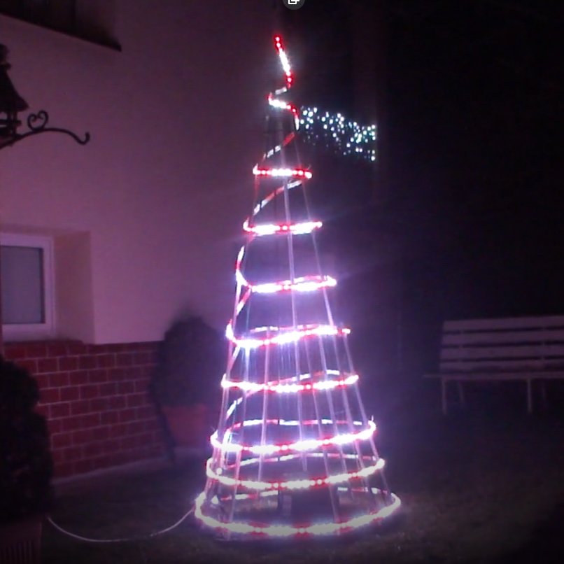 Homemade Christmas tree made with WS2812B LED strip, it is remotely controlled by the server to sync with other LED decorations.