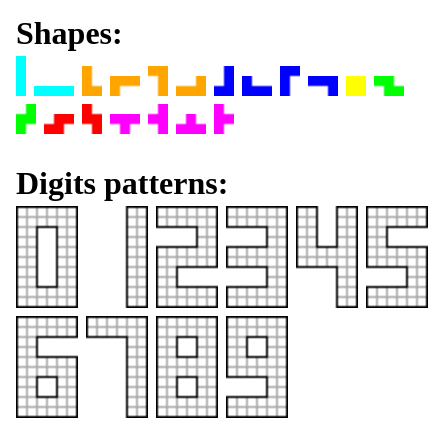 A database that contains every possible combination of digits made of Tetris shapes. Calculated using brute force method.