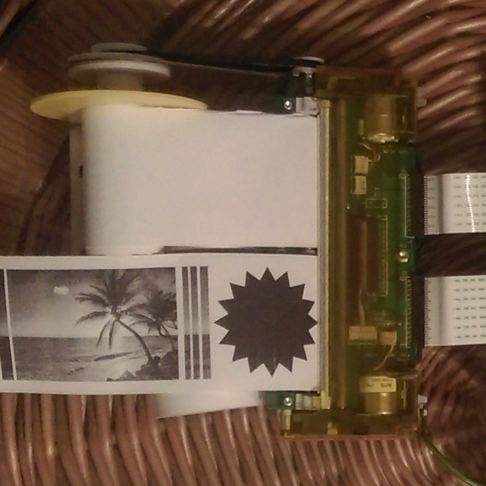 Successful attempt of printing images on an receipt printer from 2004. The thermal printer head was controlled by an ATmega328.